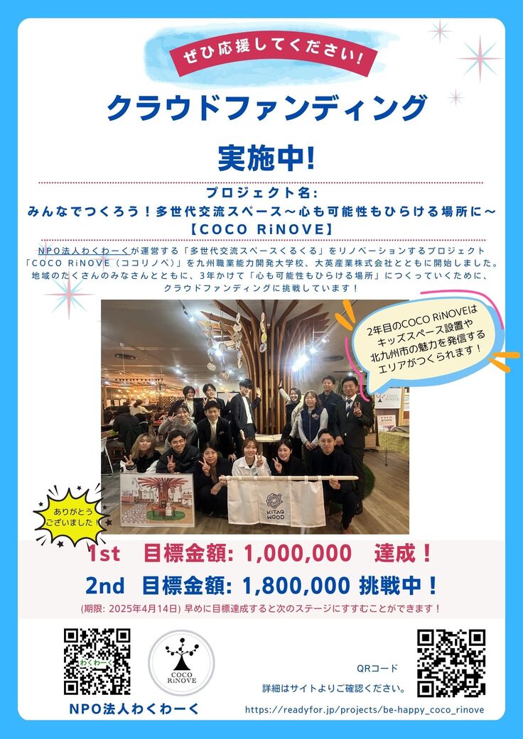 のこり10日間も、COCO RiNOVEプロジェクトが充実できるようにお知らせ等に力をいれていきたいと考えています。