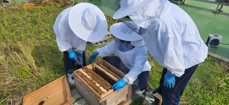 採れた蜂蜜を文化祭などで販売したり、ミツバチの展示をしたりと、多くの方に養蜂に興味を持ってもらえるよう工夫しています。