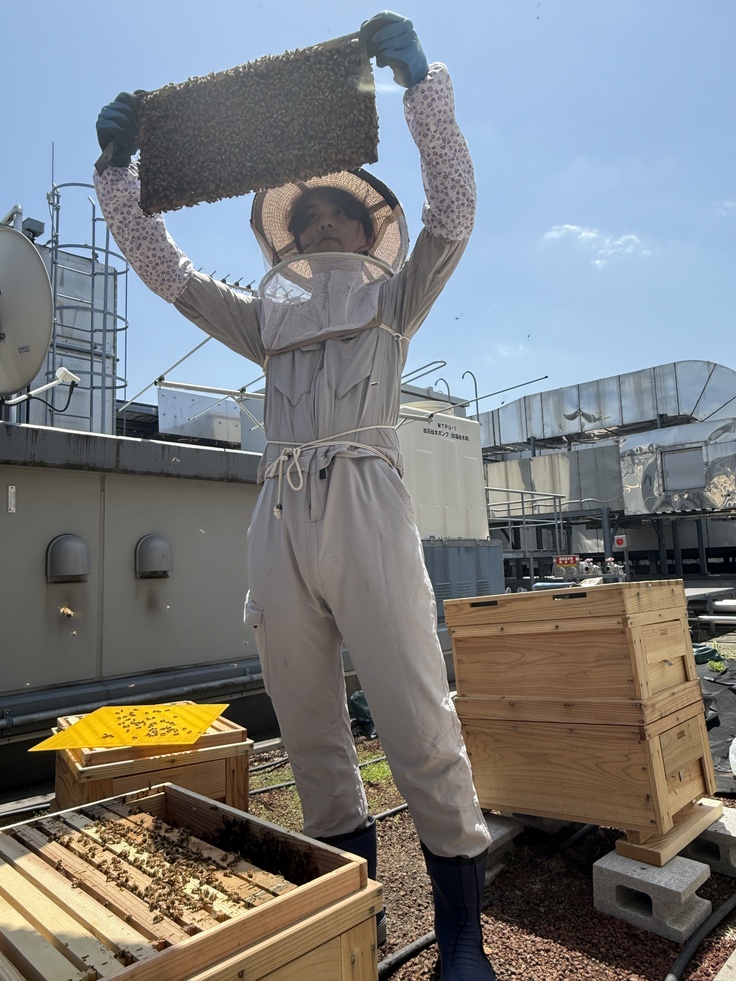 屋上は日差しが強く、内検のたびにフラフラになるほどでしたが、ひたむきに働く蜂の姿に深く感動する日々でした。