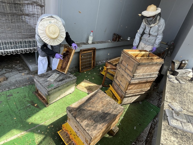 安田学園生物クラブでは、学校の校舎の屋上で養蜂をしています。中学生部員が20人、高校生部員が15人で活動しています。収穫した蜂蜜は毎年9月の文化祭で販売しています。部員は、個人やチームで研究テーマを持ってミツバチとマルハナバチの行動や生態の研究を続けています。研究成果は文化祭で発表したり、科学コンテストに出品したりしています。ミツバチサミットに参加できるのを楽しみにしています。