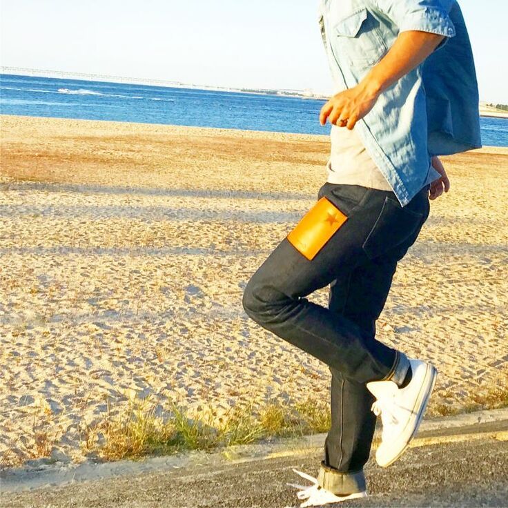 14ozセルビッジデニムに、使い込むほどに深みのある色合いに変化していく「洗えるヌメ革」を取り付け、スマホポケットを追加したモデル。一度使うと離れられないアイテムです。