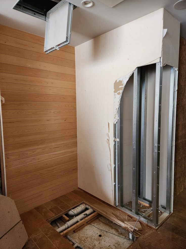 図面を確実なものにすべく、居抜きのため新店舗の解体工事が始まりました。