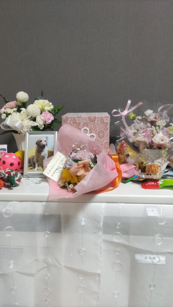代理発送とは言え…お気持ちが嬉しい。病院に通った道のりや車で振り返ると後ろに乗っているベイリーを思い出し会社で涙してしまいました。つい先日まで毎週通ってたのに急に遠くなった様な気がする病院…