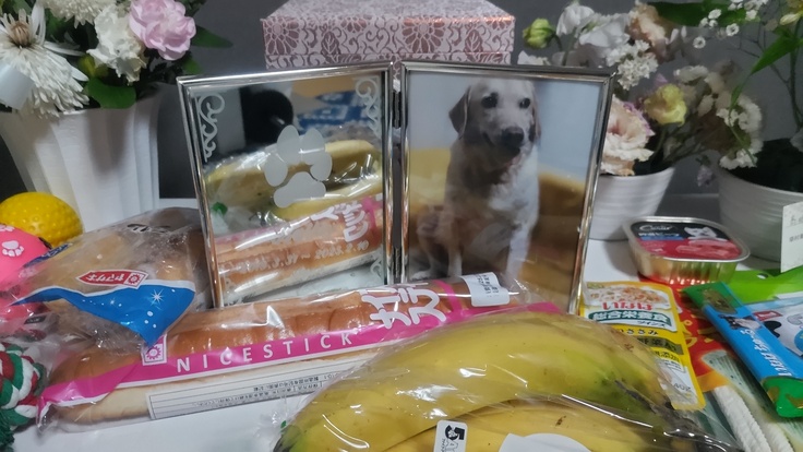 大好物で後半薬を飲むのに食べていたナイススティックと後半は食べなくなったバナナ。あんなに好きだったのに…と言う事で御供えしてます。