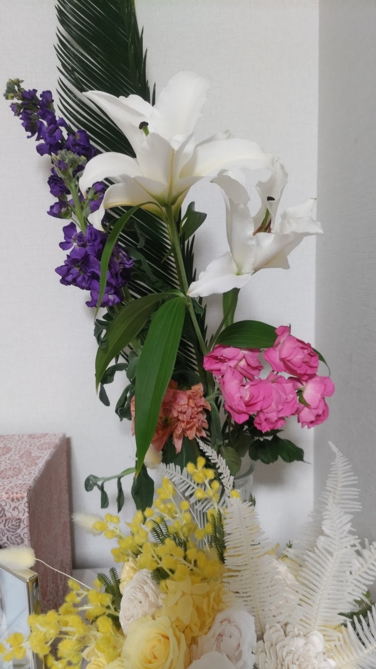 帰りにはいつもお花が貰えるので女性に紛れて頂いてきました。