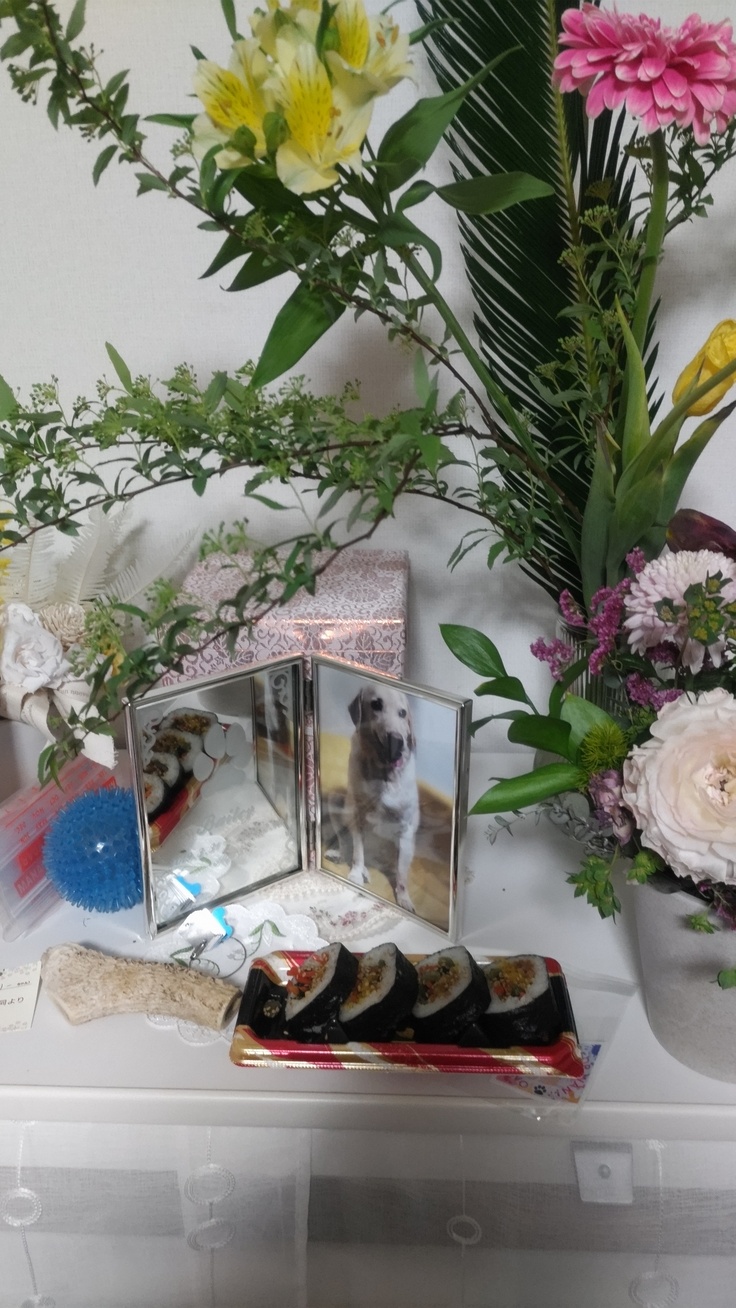 大好物の鹿の角(もっと長かったのがガジガジして半分に)と御供えしました。