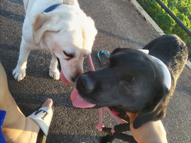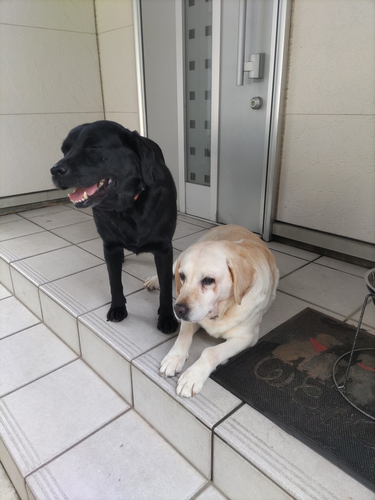 調べてもらうと、この2頭はベイリーとは姉妹では無いですが、お母さん側の血が繋がっているとの事で親戚だそうです。おなかもおっぱいもダルだるのベテラン感がありますが、それもこの子たちが歩んできた道でして、個性として近所の皆さんにもご理解いただき仲良くしてもらっています。ベイリーが生き返ったとか、似ているとか、死んだことを知らないお久しぶりの方にはベイリーだと思われ、黒ラブを追加で迎えたと思った方もいます。