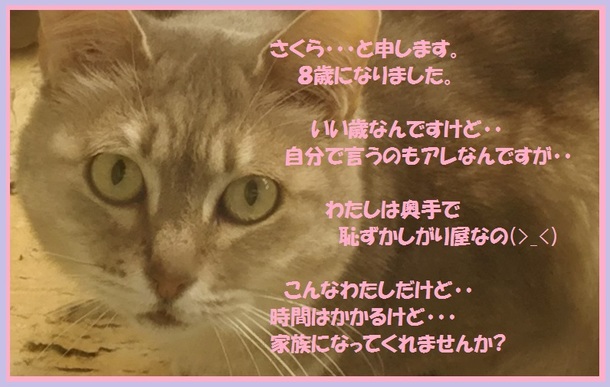 早めに猫たちに「終の棲家」を見つけてあげないと、今後さらに厳しくなります。
