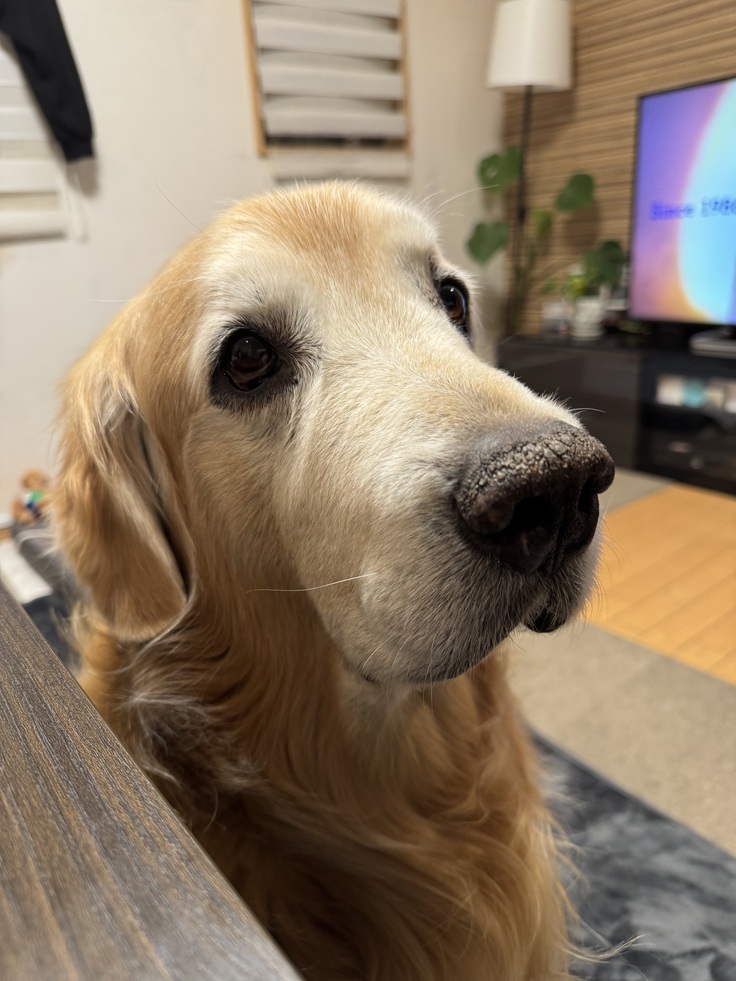 ご飯タイムはテーブルの横に来て、おこぼれを狙うベス。