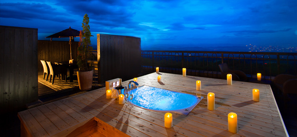 客室は6部屋、と多くはないですが、それぞれのお部屋の家具や造りも違っていて、下界を見渡せる海側のお部屋と大山を真上に眺めながら入る外風呂が人気の山側のお部屋タイプをご用意。