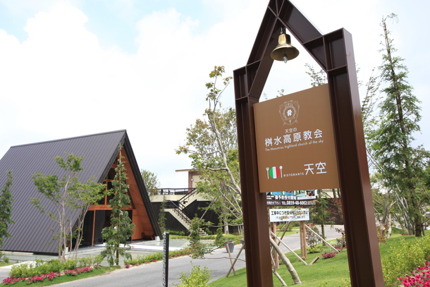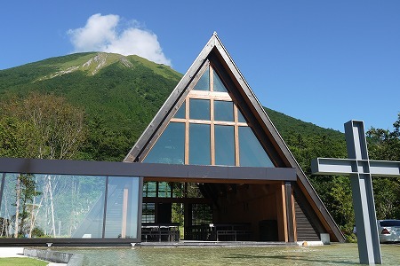 大山の正面の真下・・・という場所に、教会とレストランも備えています。