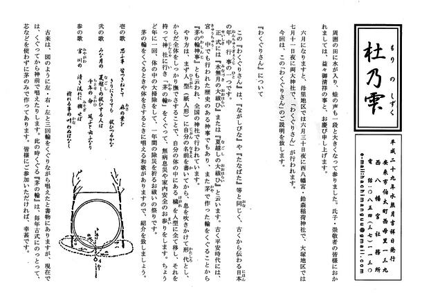 茅で作った輪をくぐり、無病息災や家内安全など、一年間の除災を祈るお祓いのおまつりだそうです。