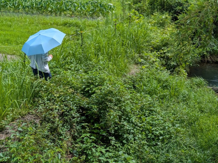 その町村の防災メール受け取り設定をしており、7月3日から11日までに3回くま目撃情報を受け取り、理事長実母危篤状態1ヶ月は行けず、帰天直後から2名でくま調査に行きました。