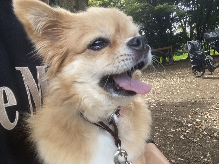 今日は天気も良くて、涼しそうだったので、子供達もつれて、近所の公園までお散歩に行きました。もちろんビビは歩かせることは出来ないので、ずーっと抱っこです。