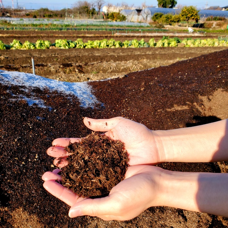 そこで未使用であった備蓄木をチップ化・堆肥化し、土壌改良剤として災害に強い森林再生にさらに活かしていきます。