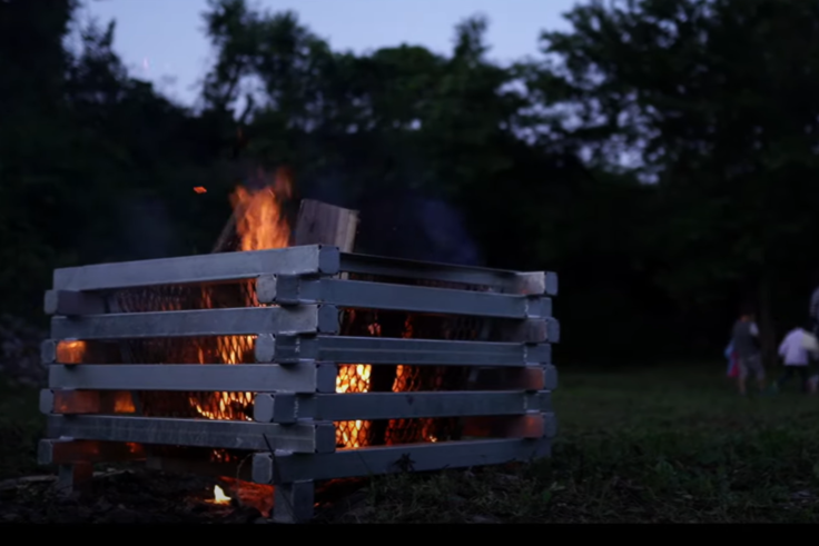 ③そして丸太状の太い備蓄木を効率良く燃やし、災害時に私たちを暖めてくれる焚き台