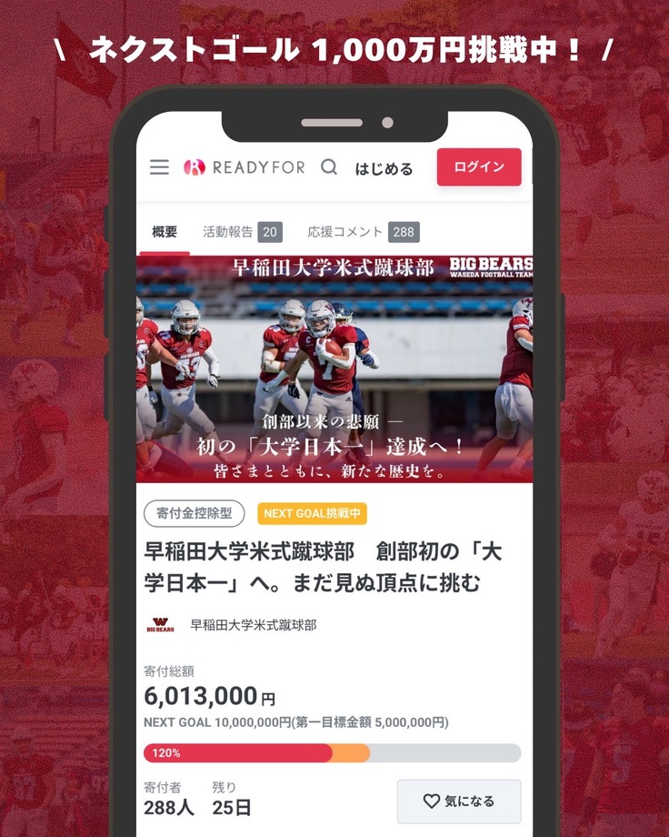 7月に始まったクラウドファンディングは第一次目標の 500万円を達成し、現在はネクストゴールである 1,000万円の達成を目指しています。
