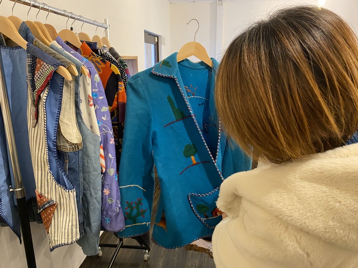 打ち合わせ中なのに、ついついお洋服を物色し始めるBIG WAVE長女😅