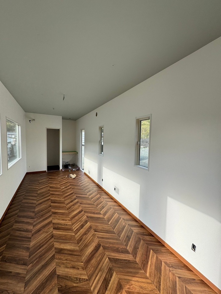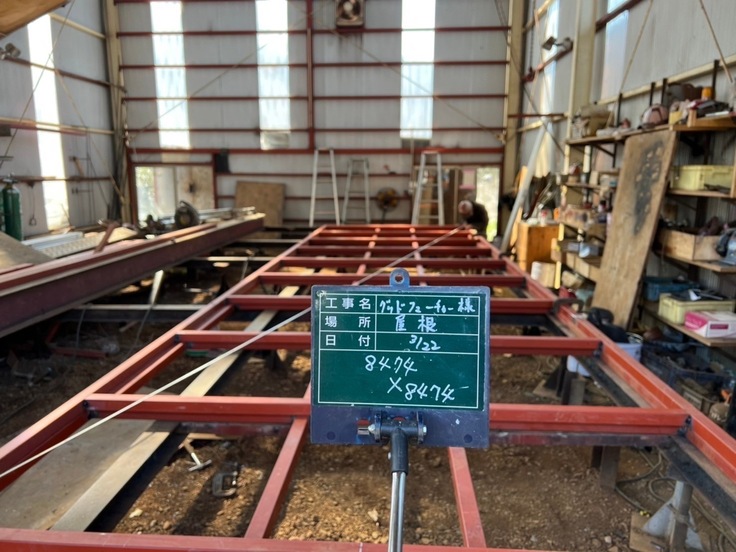 愛知県豊橋市からやってきますトレーラーハウスは骨組みも終わり内装へと進んでまいりました。