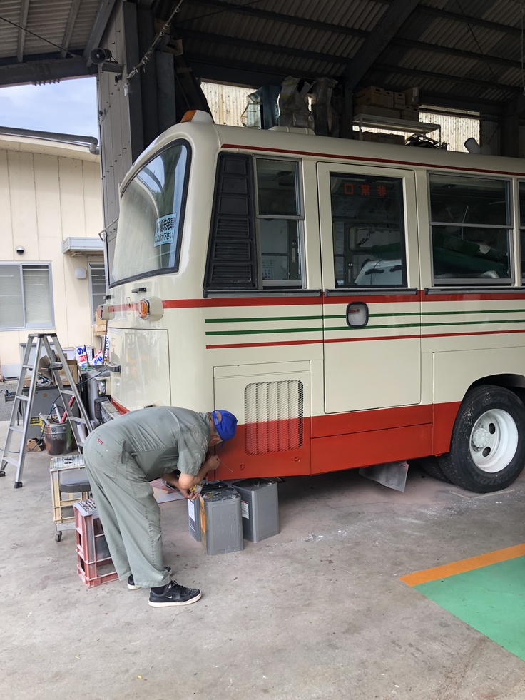 バスの塗装は非常に大切な作業です。腐食や雨漏りへの対処は古いバスほど取り組まねばなりませんが、やはりほかの若いバスを優先しがちです。