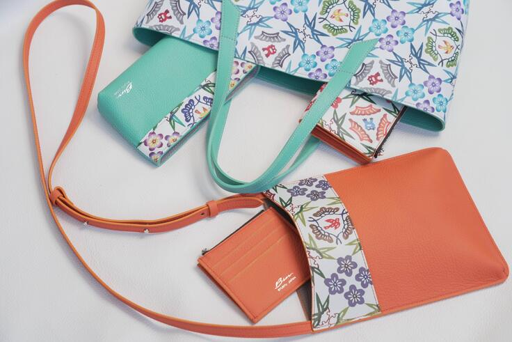 最近では、京都発の革素材ブランド「KYOTO Leather」と協働し、紅型の染色技術をレザー素材に応用したコラボ製品を開発しました。伝統と新素材の融合により、紅型の新たな表現の幅を拓く試みであり、多くの方に「伝統工芸を持ち歩く」喜びを届けています。
