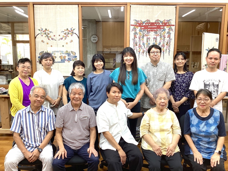 私たちの取り組みは多岐にわたります。組合展をはじめとする展示会・イベントを通じて作品の魅力を直接伝える活動や、観光客や若い世代にも親しまれるような紅型染め体験プログラムの実施。体験を通して、自らの手で色を差し、紅型の奥深さに触れていただくことは、伝統への理解を広げる大きな一歩となっています。