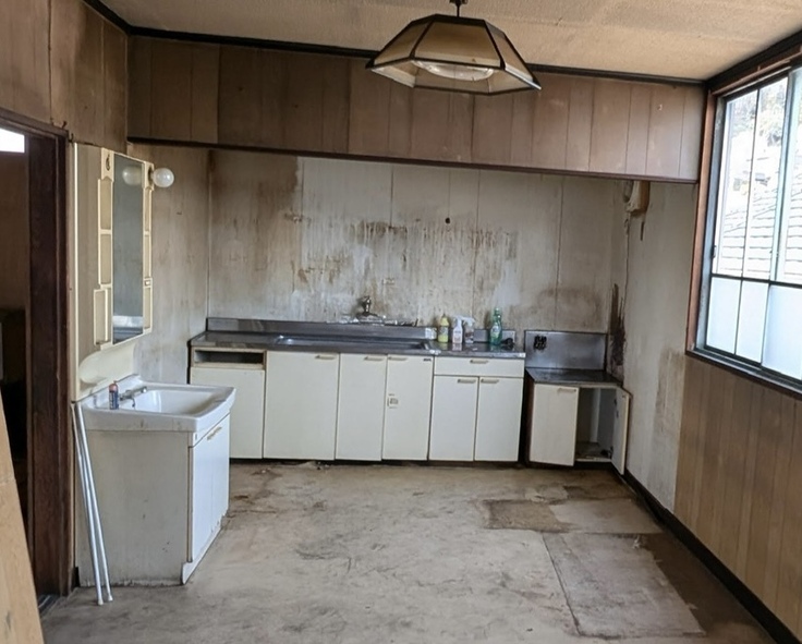 木目の壁ですが汚れや落書き跡が目立ちます。