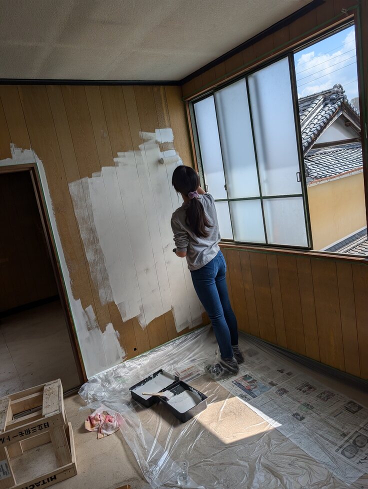 4月に入り毎週末を利用してのボランティアスタッフでの作業が始まりました。まずは、壁のペンキ塗りから始めました。