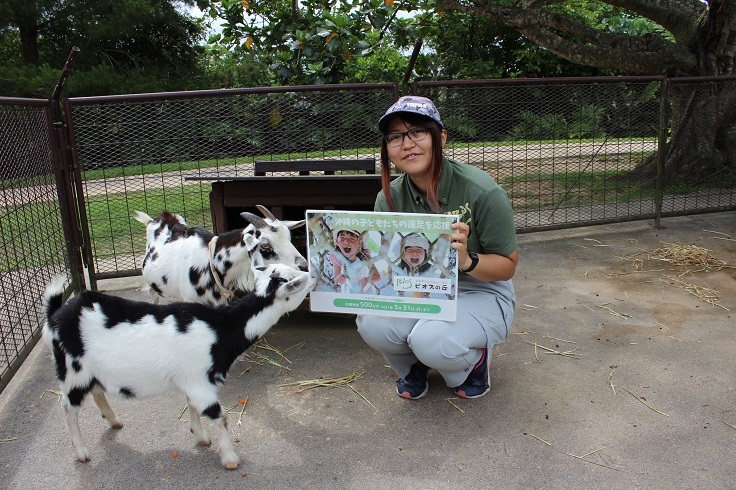 園内にいる島やぎ。えさやりする事もでき、ゲージ外にいるリードがついている