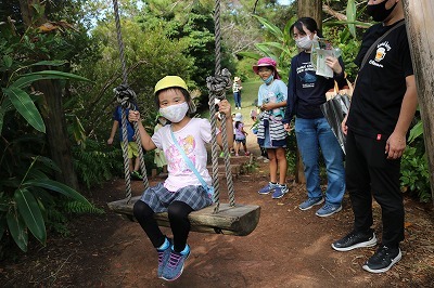 高さ約6メートルのブランコに乗ってはいポーズ!