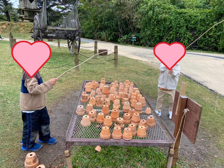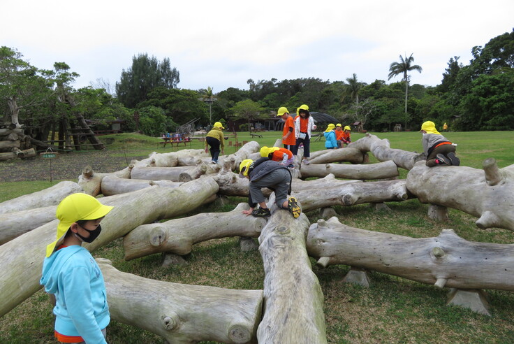 遊御庭(あしびうなー)の遊具で遊んでいる姿です。