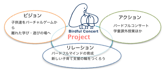 今回は、長年温めてきたバードフルコンサートという企画を通して、未来を担う子どもたちに、自然環境の素晴らしさ、大切さを伝える音楽やアートの総合イベントを計画しています。最近の子供達を見ていると人との関わり、自然との関わりが希薄になっている感を受けます。