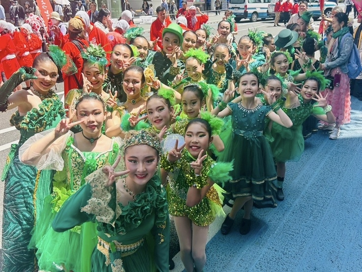 2025.05.04 博多駅前′どんたく′ストリートに参加させて頂きました!昨年は『心華』での出演でしたが、今年は緑の衣装を基調にした『ウィキッド』を披露🧙♀️映画の世界観を大事に楽しく踊ることができたと思います😊風が冷たく少し肌寒かったですが、晴天のおかげで衣装も映え、今の季節にピッタリ✨たくさんの方々に見て頂けて幸せな時間を過ごせました♡