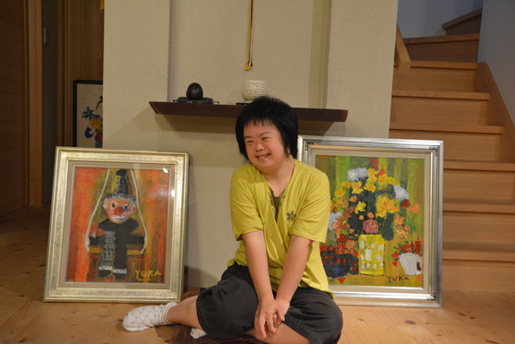 こんにちは!滋賀県大津市に住んでいる山岡康人・啓子と申します。私たちには35才になるダウン症の娘、由佳がいます。小さな時から絵を描くのが好きで、中学生の時から油絵を描いています。この度、ドイツでの展示会の話が持ち上がり、一緒に出展する方のご家族や、通所施設の方々や、サポーターの方々と一緒に「日独 知的障がいのあるアーティストたちの交流展」実行委員会を立ち上げました。