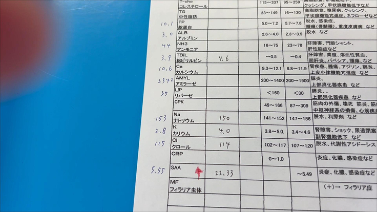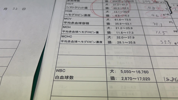 検査検査でガリガリでご飯も食べなくなりましたが一生懸命生きようとしている状態でした。