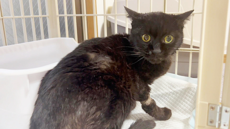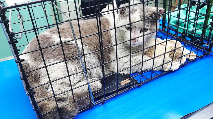 保護できました。ボロボロで本当に汚なくすぐ病院へ行き洗ってもらい検査しました。エイズは陽性でした。