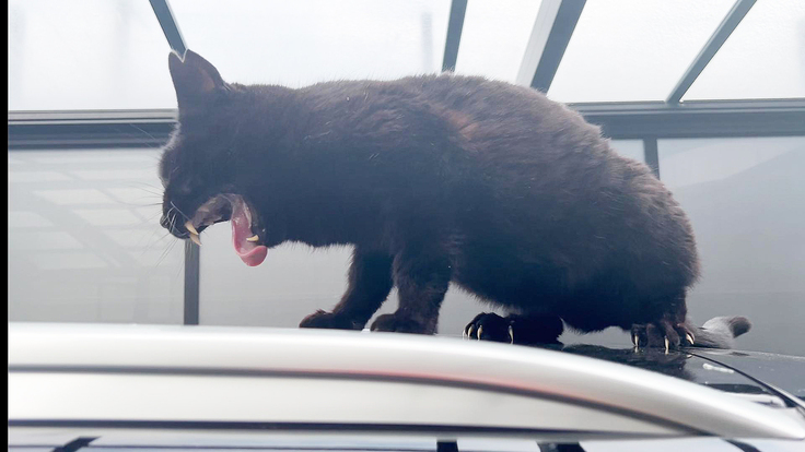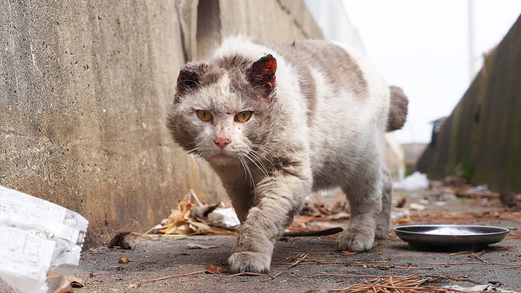 この野良猫に遭いました。脚がいたそうで耳がボロボロでした。体つきが大きく怖かったです。