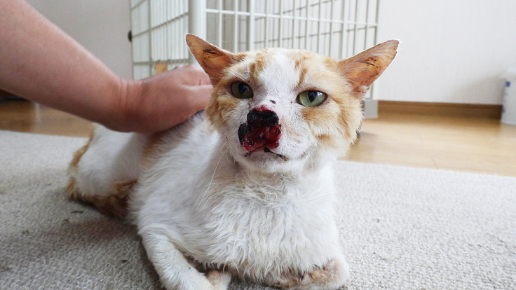 傷だらけでした。虐待なのか?捨てられたのか?と思いました。よく見たらブランドの猫では?