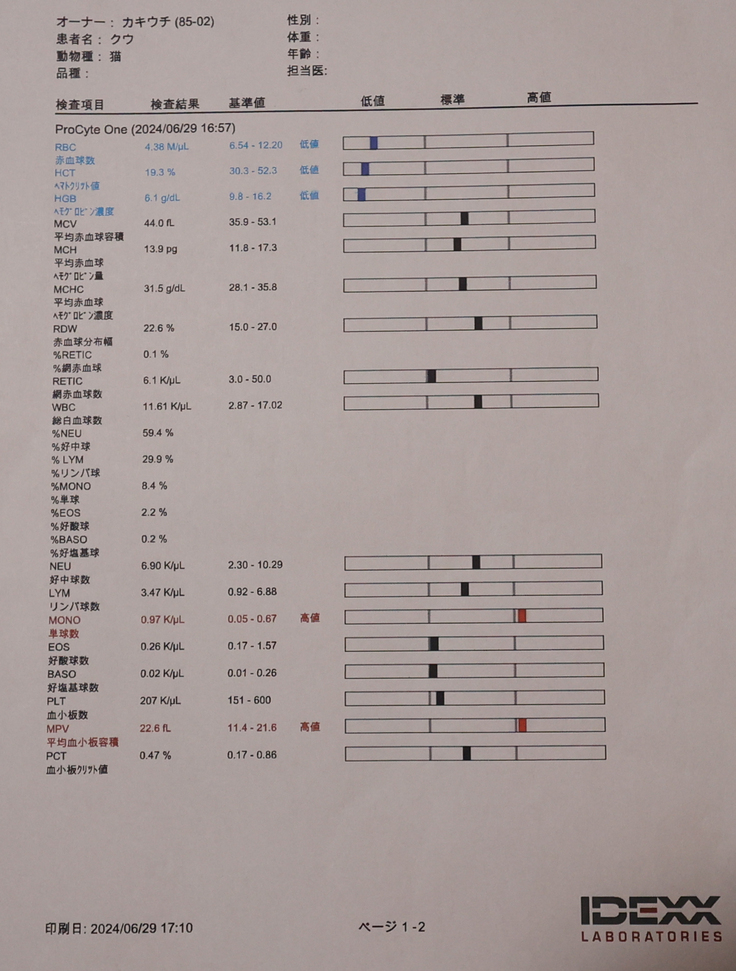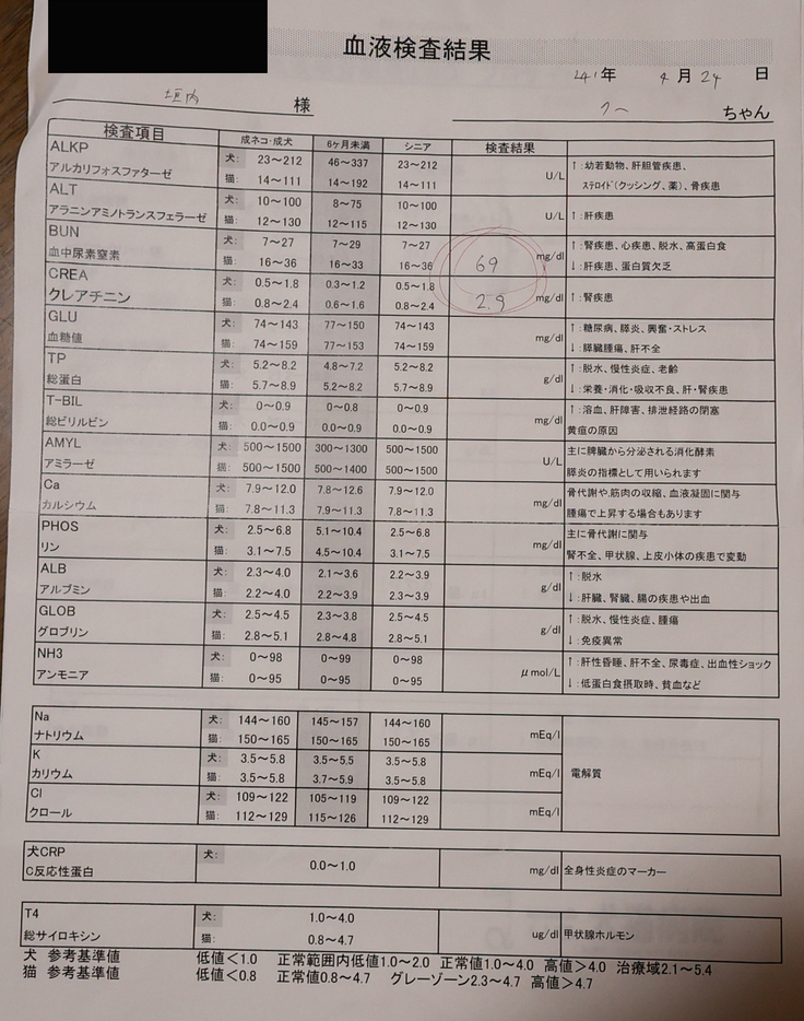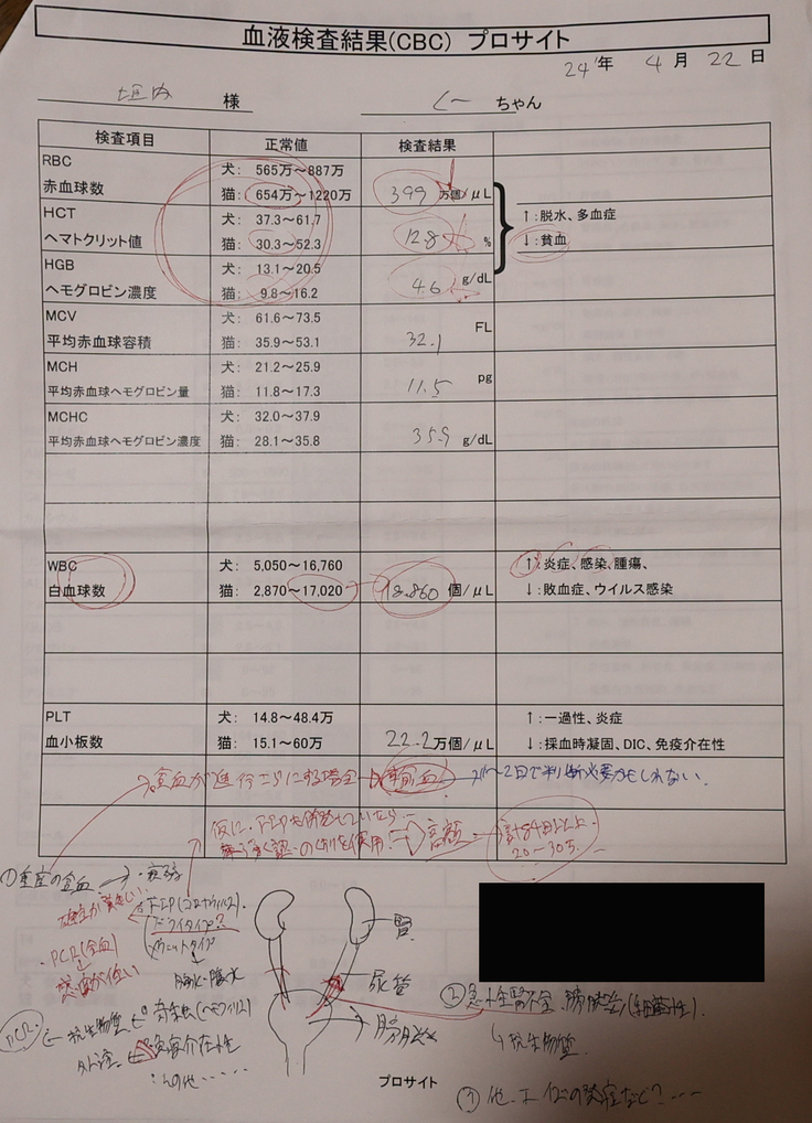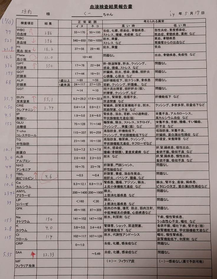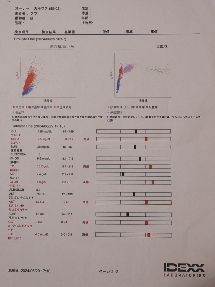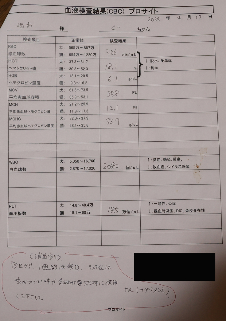 黒猫くーちゃんの今後必要な検査費用 約200000円(今後肝臓の数値 貧血検査 FIPが半年間の間に再度発症しないかの検査