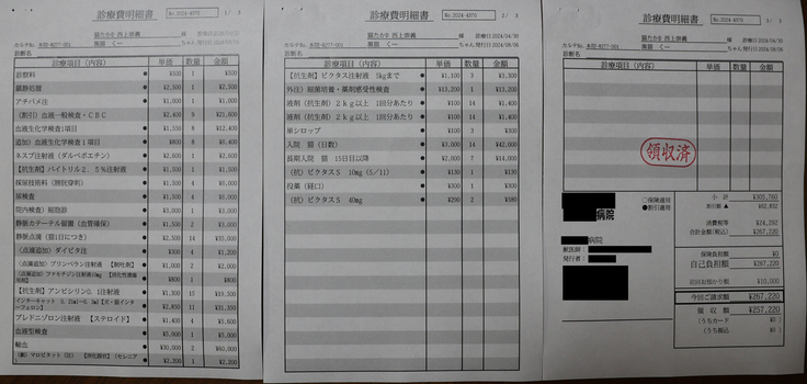 医療機関にお支払いする・もしくはお支払いした費用ですが、ざっと計算すると、
