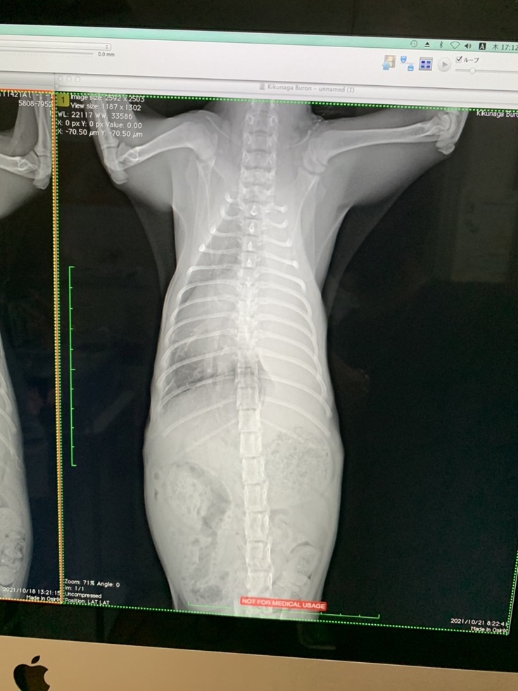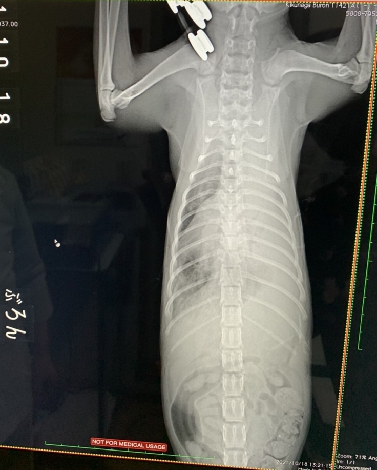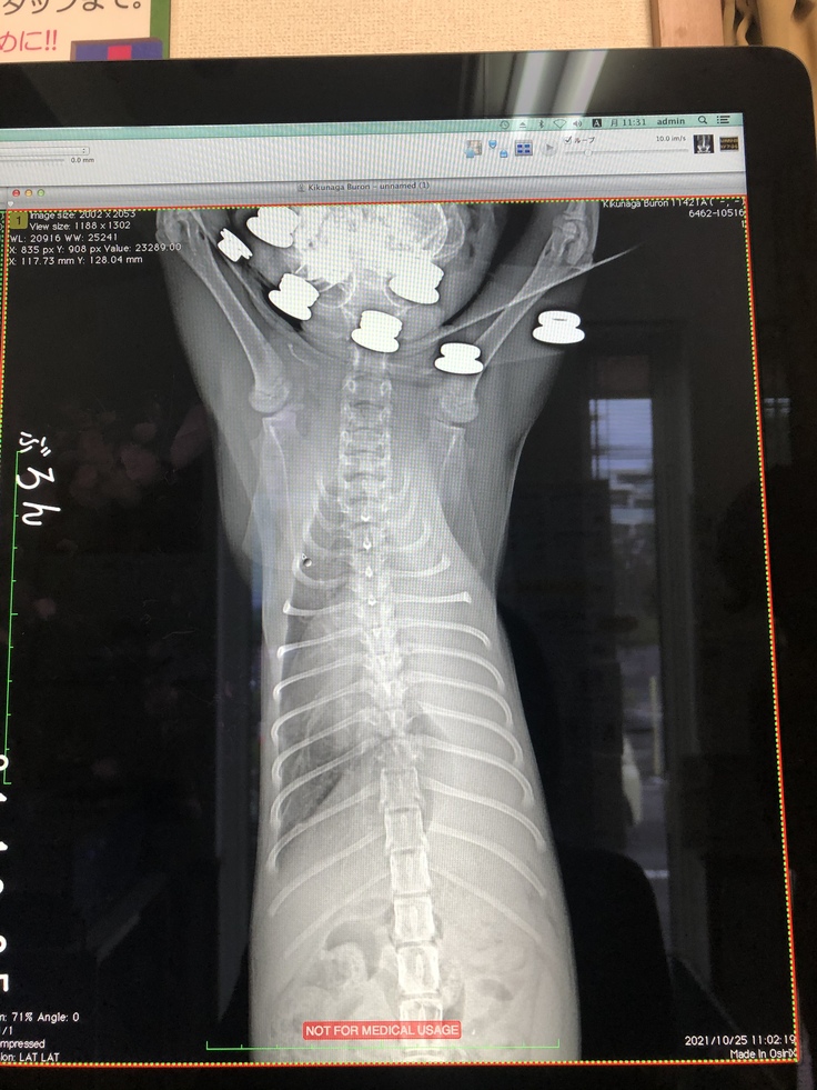 無気肺の可能性があるため、肺のレントゲン検査を毎週とることになりました。