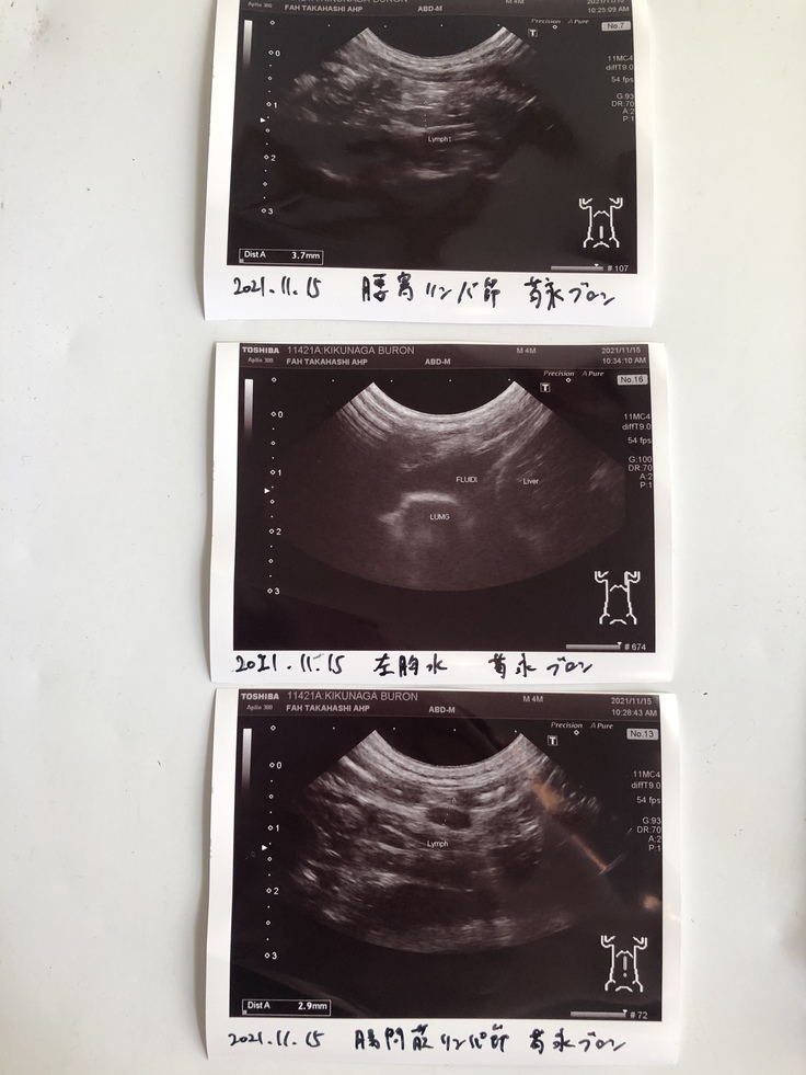 酸素吸入後、呼吸が落ち着いたので、エコーで確認したところ胸水を確認されました。血液検査とレントゲン検査が難しいので、胸水を抜いて検査をするよう勧められました。ところが、