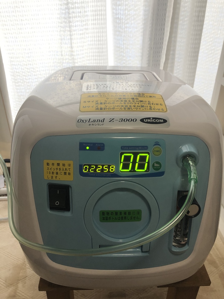 9時にかかりつけの病院を受診し、血液検査とレントゲン検査を勧められました。ブロンが検査の間、待合室で待っていると急に診察室に呼ばれ、血液検査のため、血を抜こうとした際にブロンが抵抗して呼吸困難になりチアノーゼをおこしたと説明を受けました。獣医さんがブロンに酸素マスクをあてながら酸素吸入を始めました。その時私は突然のことで、気が動転して足もガクガク震えて立っているのがやっとでした。