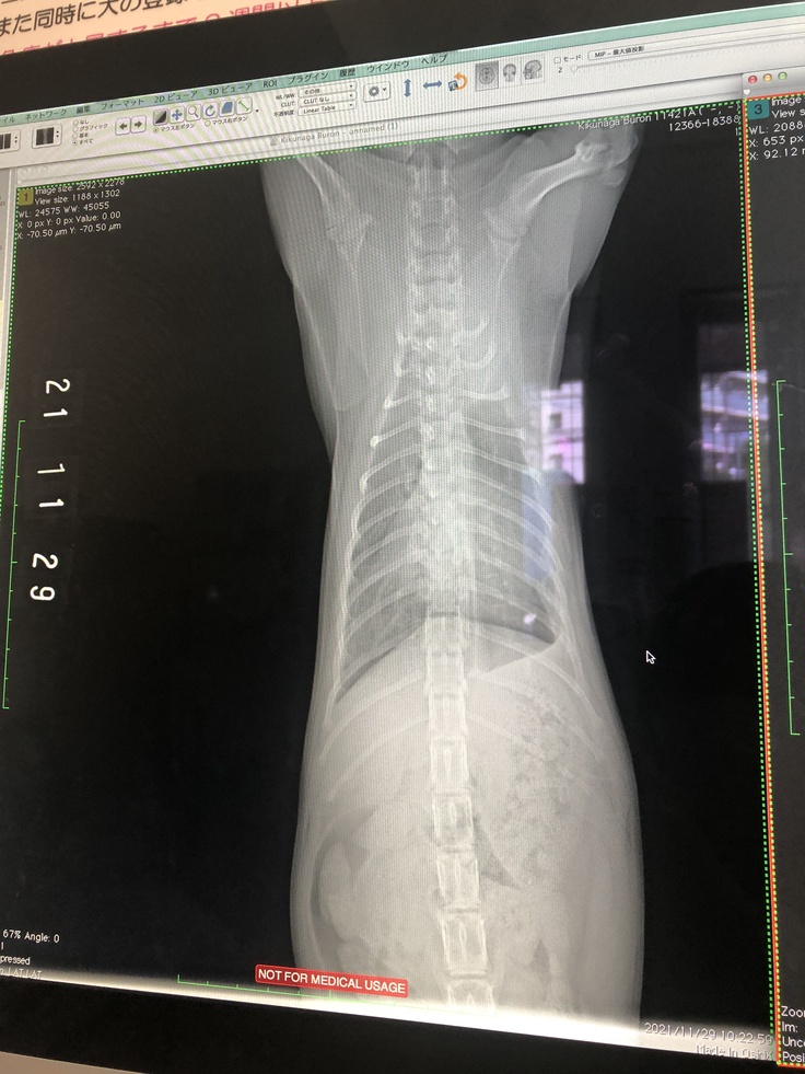 左肺が黒い部分が増え酸素が取り込めるようになったので、無気肺の危険性はないとの診断でした。心音も聞こえるようになっていました。いつ無気肺になってもおかしくないといわれていたので、少し安心しました。