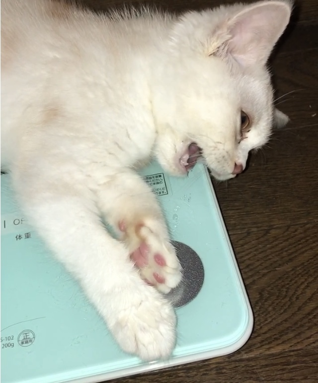 10月8日 ほんのわずかなご飯を食べては寝ているばかりで、呼吸も早く感じたので、病院を受診しました。肺の音には問題なしとの診断で、食事指導を受けました。その後も今までは食べていたドライフードを一切食べないので、いろいろなウェットフードを試しましたが、手にのせてあげないと自分から食べない日が続いていました。