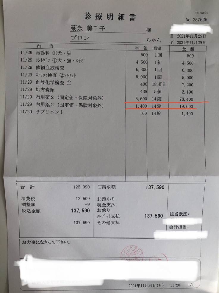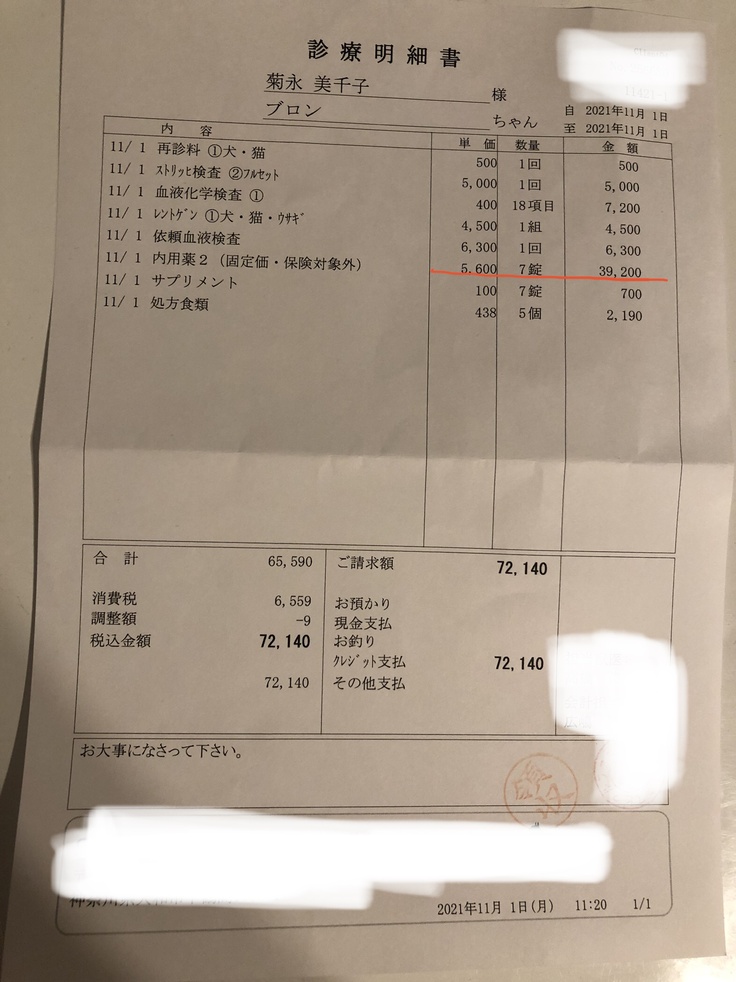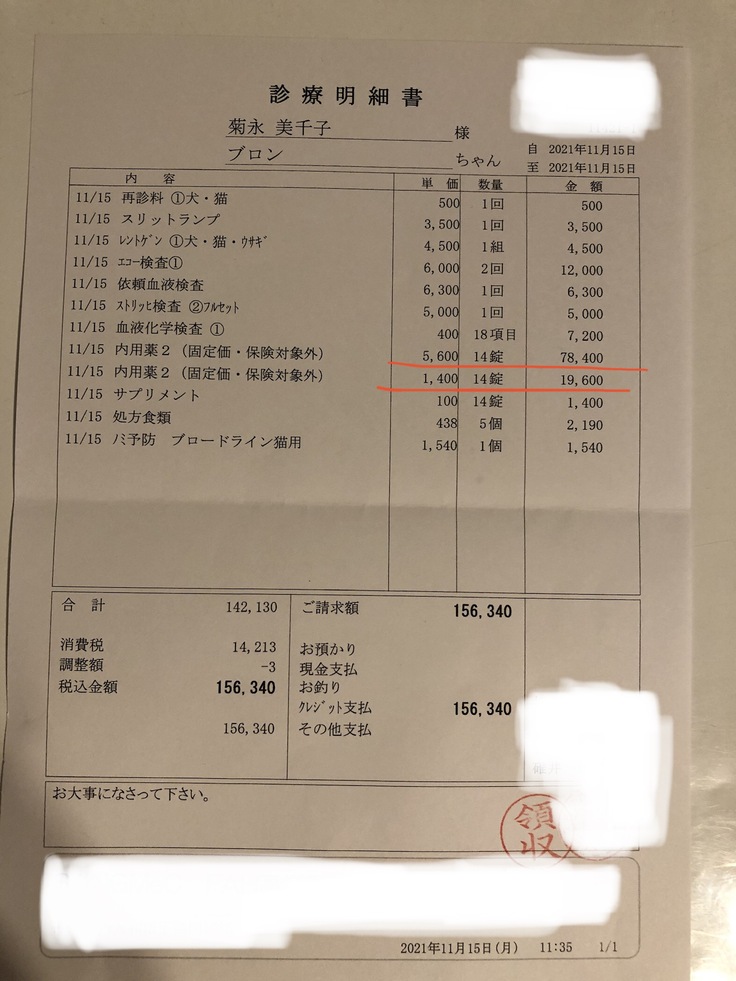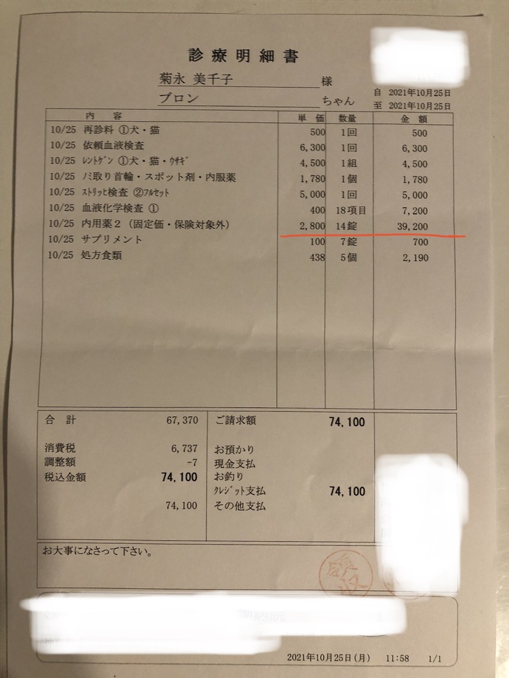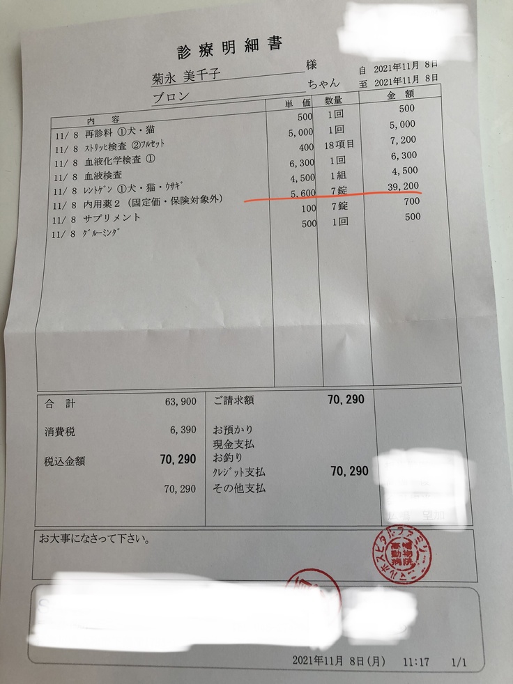 帰宅後、FIPについてできる限り調べました。そして、FIPは致死率が非常に高く、完治するのは難しい病気ですが、国内未承認の海外薬を84日間同じ時間に投与することで助かる可能性があることを知ります。と同時に、未公認の薬のため非常に高額だということ、薬代や検査代あわせると100万円以上かかるということがわかりました。