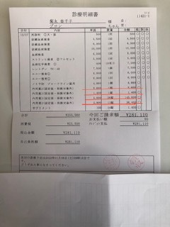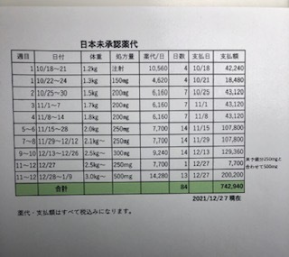 投薬量が急遽、増えたため投薬代も予定の金額を超えました。