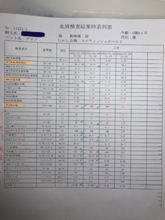 腎臓の尿素窒素の数値とコレステロール値が高くなっていますが、子猫用のフードは高タンパクなので、先月切り替えた子猫用のフードを継続していいそうです。