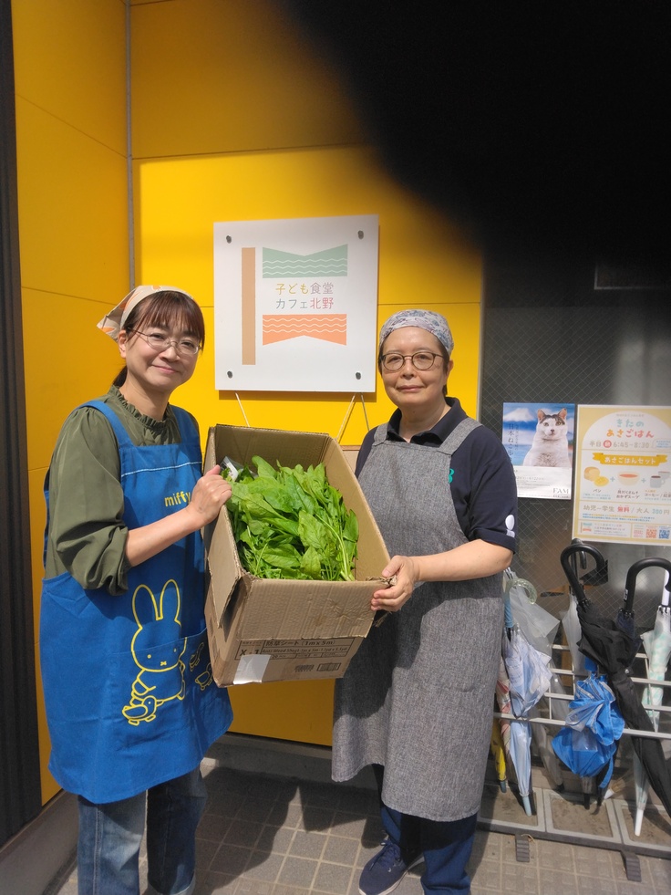 農福連携で運営しているコノファームの野菜を多摩エリアのスーパーへ納品、途中にあるカフェ北野さん(こども食堂)に、少し大きくなった、ほうれん草をお裾分けしました。