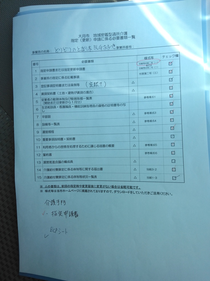 本日、地域密着型通所介護指定申請書類を提出しました😀